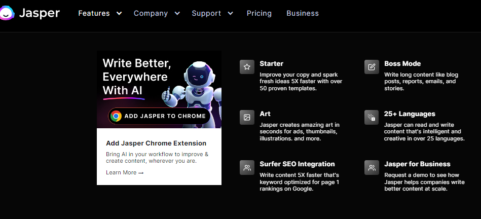 Jasper is quite a handy tool for creating Google ad copy, headlines, and articles. Jasper’s collection of templates provides users with a variety of options for creating content that suits the many needs of their business.