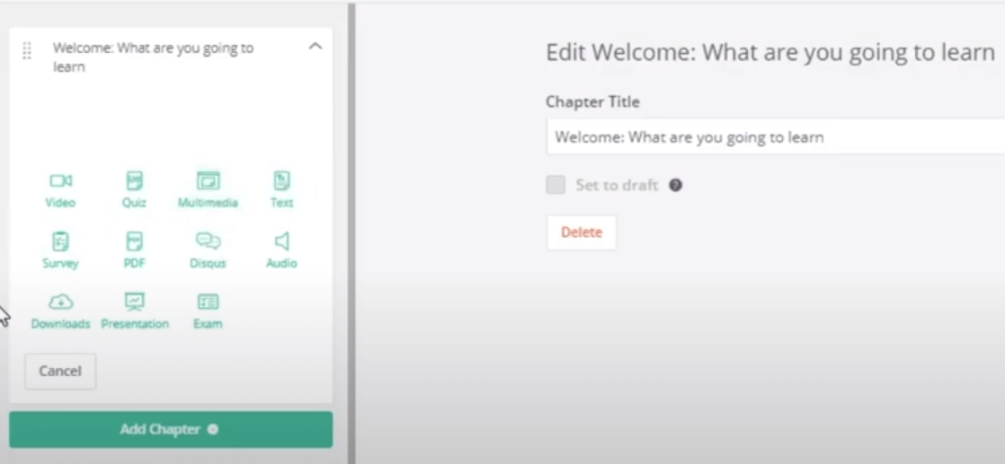 You can also add bulk lessons and Thinkific will separate them into modules for you. However, you can add only two levels of content, that is Lessons and Chapters. Unlike Kajabi, you can’t further modularize your content.Â