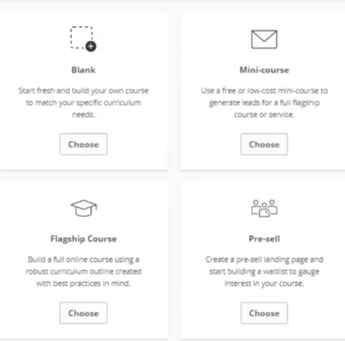 You can click on any of these links and Kajabi will create a blueprint for you. Alternatively, you can choose to work with a blank canvas if you prefer that.Â