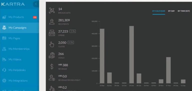 With every feature Kartra provides, it also has an analysis running behind it. You can see which emails are leading to people visiting the sites.