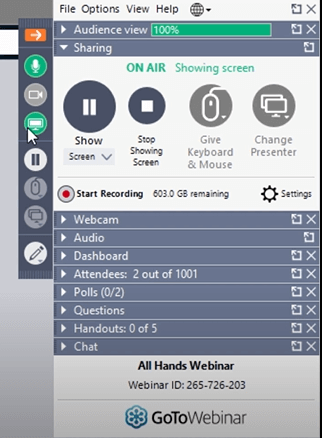 Also noteworthy is that starting a webinar on GoToWebinar is actually not that straightforward.