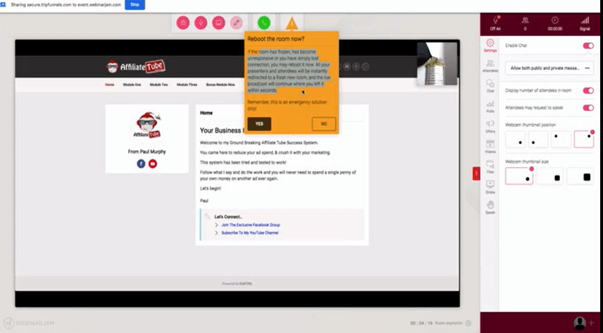 Technology can be unpredictable, no matter how good it is. In fact, WebinarJam had a number of fails, which are what led to the inclusion of the panic button in WebinarJam 4.0.